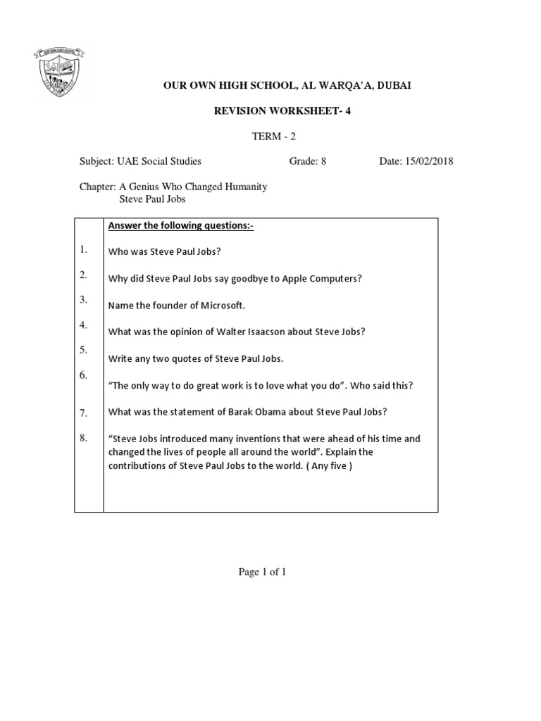 Social Studies Worksheets 8th Grade Uae National Day one of Education Worksheet Template - ideas to explore this Social Studies Worksheets 8th Grade Uae National Day idea you can browse by and. Answer the following questions-1. A Genius Who Changed Humanity Steve Paul Jobs.
